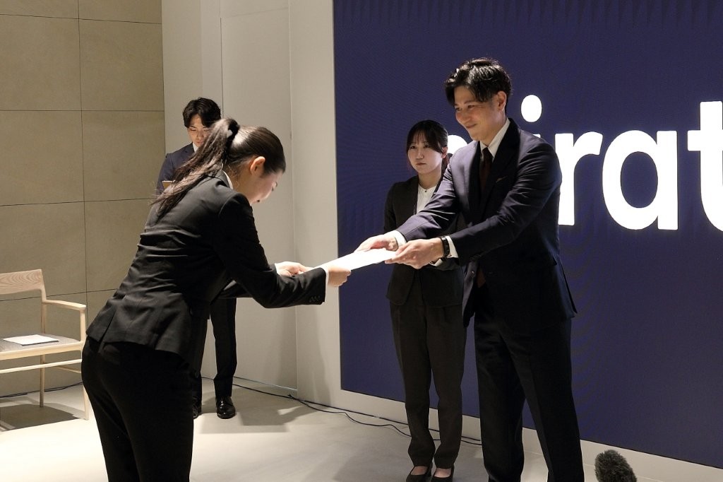 ニーナさんも新入社員と同様に辞令が交付され、「謹んでお受けいたします。」と辞令を受け取る姿がとても印象的でした。