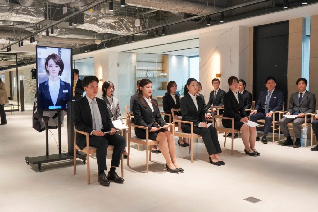 AI社員「美楽ニーナ」と交流する新入社員