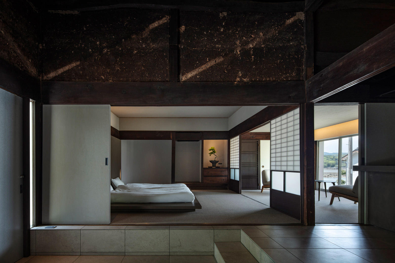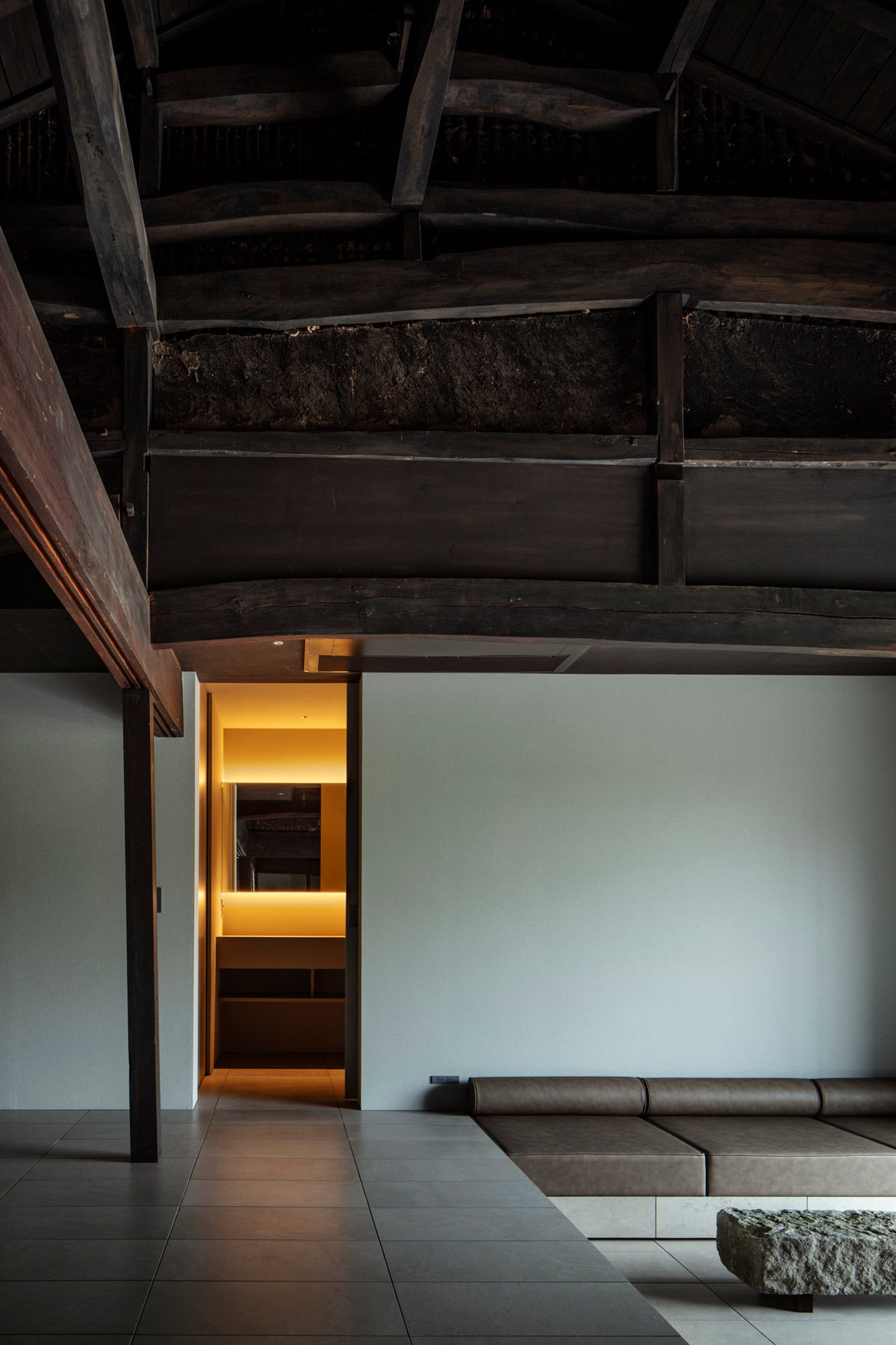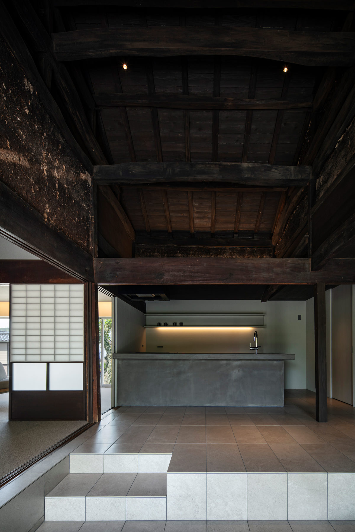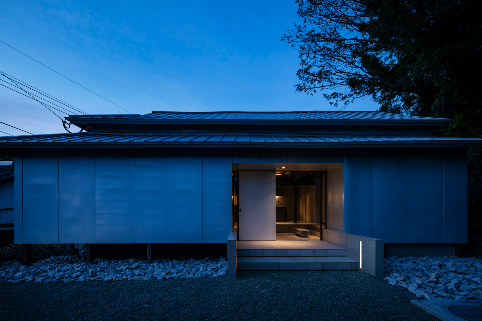 地域の素材に着目するシェフの世界観に触発され、建築においても地域性を感じさせるものづくりができないかと考えた。漁港に積まれた、荒々しい銀色の水揚げ鋼製箱が印象的であったこと、イワシなどの青魚が近海で多く獲れることから、銀色の鋼製箱で古民家を覆うことで、地域の文化を纏い、この先も永く保存されていく民家の姿を構想した。また、かつては厨房でもあり、客人を迎える空間でもあった「玄関土間」の文化を再解釈し、外部からキッチンまで一続きの「玄関土間」を設えた。地域の生業の延長にありながら、地域の未来を予感させる、現象のような建築を目指した。