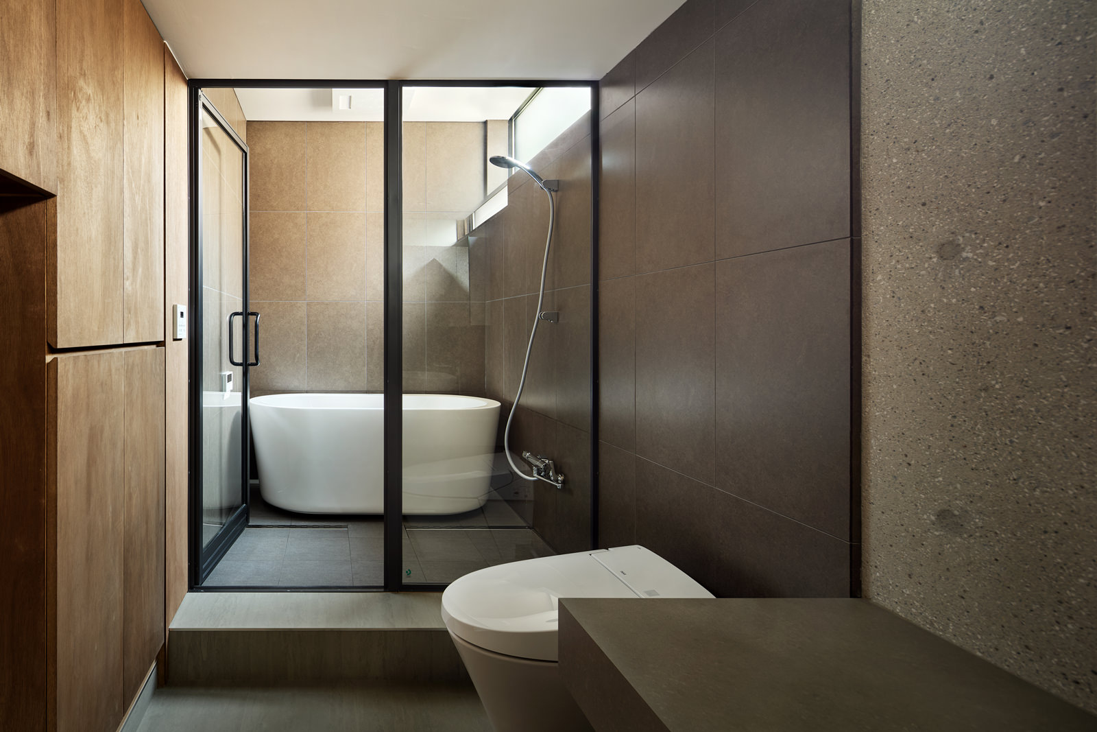二人の男性パートナーがくらすためのマンションリノベーション。リビングと浴室を一つの場として計画するなど、標準的な家族観に基づく空間的・機能的な場のヒエラルキーを解体・再構築した。壁式構造の制限がある中、緩やかに全ての空間を繋げつつ、スライディングウォールによって場の関係が可変することで、日常的な使い勝手にも配慮。在宅ワークなど、共に過ごす時間が長い二人の生活を豊かにする住宅である。