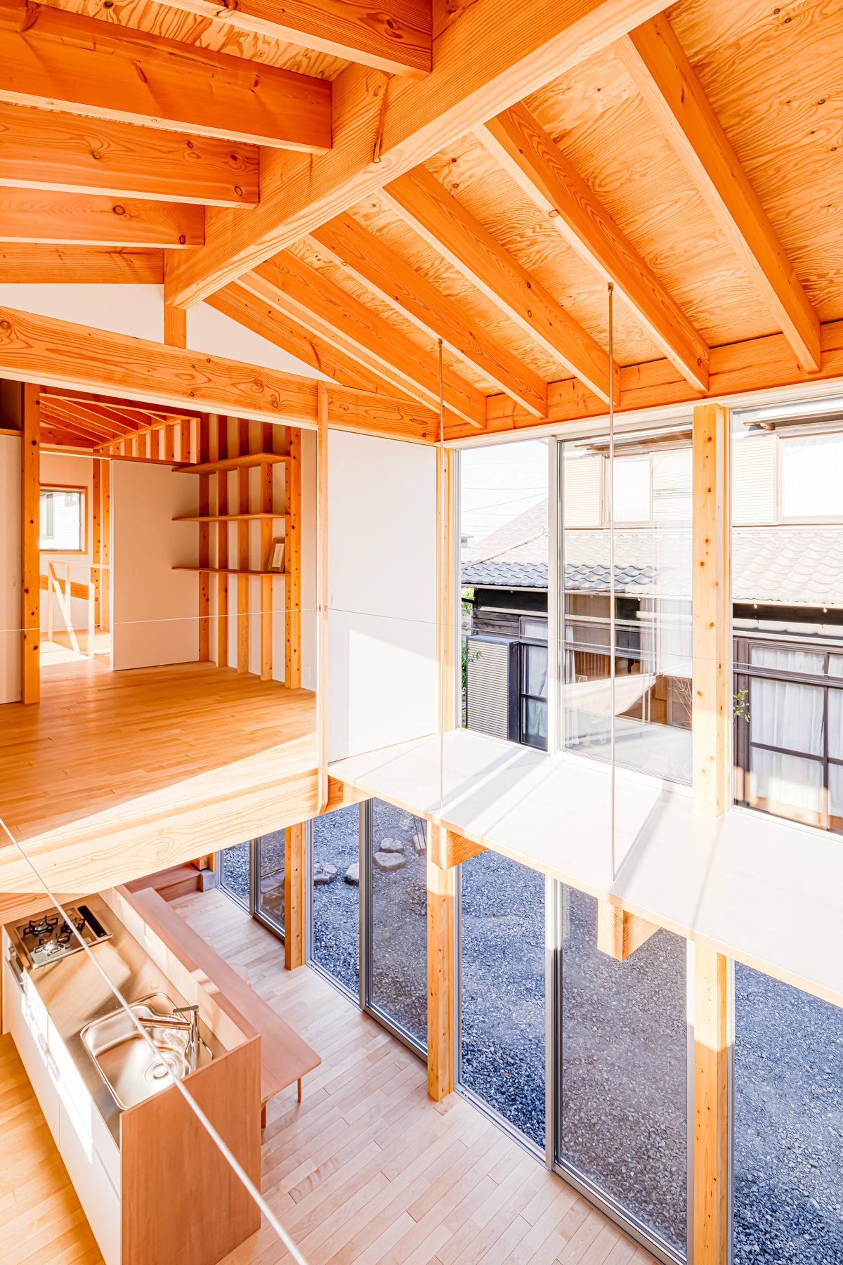 周囲の地形と敷地の条件を精緻に読み解き、谷から丘への空間の流れを通じて、土地に根付いた感覚を持てるくらしを目指しました。
